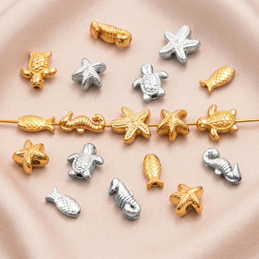 5 piezas de cuentas espaciadoras sueltas de acero inoxidable con forma de animales marinos (caparazón de tortuga, pez) para verano, para la fabricación de joyas DIY, pulseras y collares