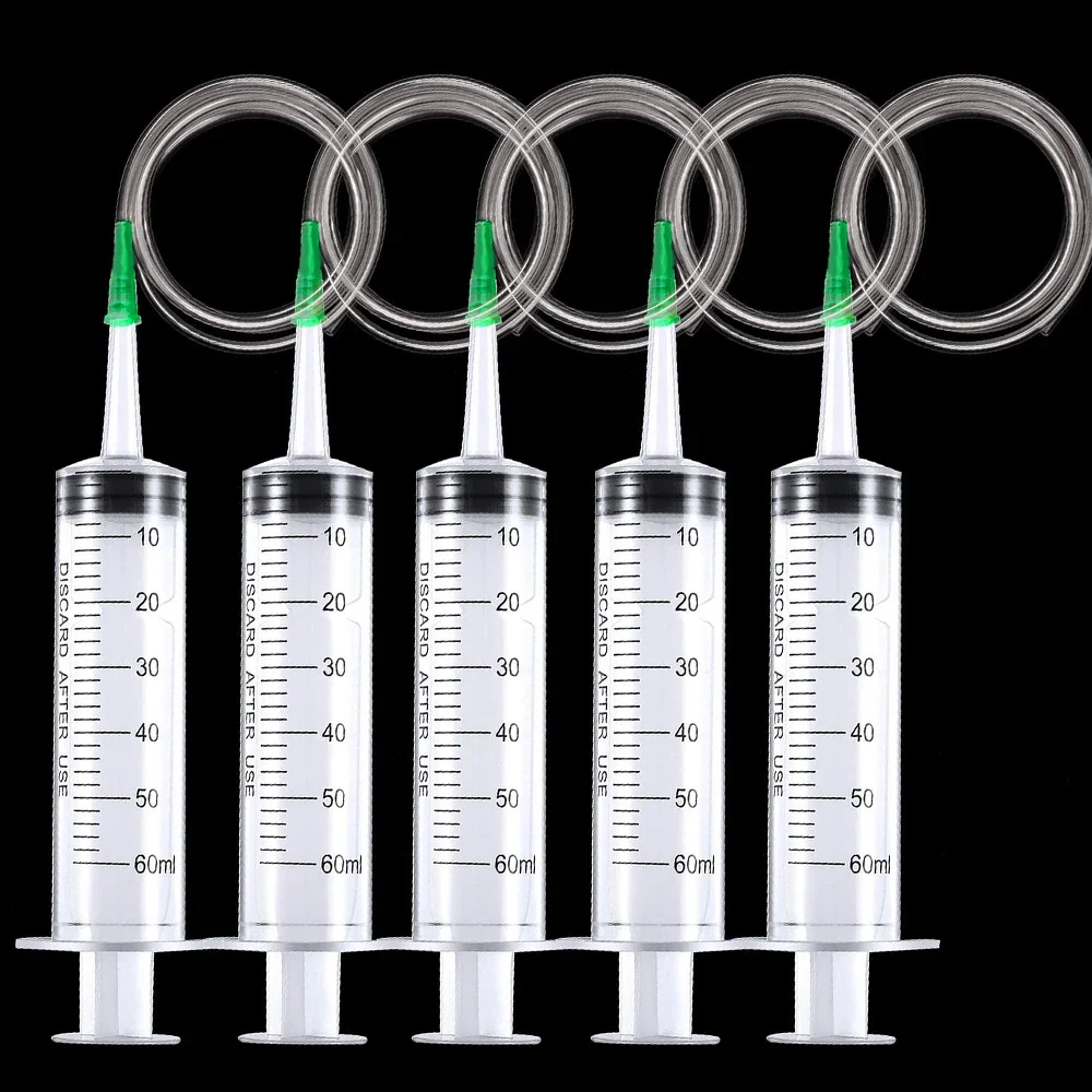 Jeringa de 60 ml con Manguera de 1 m, Jeringa de Plástico para Alimentación de Mascotas con Tapa, Jeringa Medidora para Laboratorio, Dispensación, Riego y Bombeo