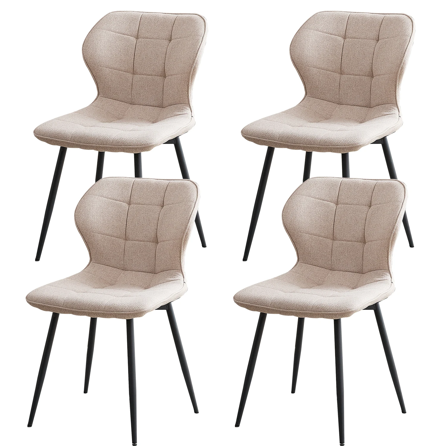 GrandCA HOME Juego de 4 sillas de comedor de estilo nórdico, cómodas sillas de comedor de tela de lino, sillas con patas de metal, beige/marrón/gris/negro
