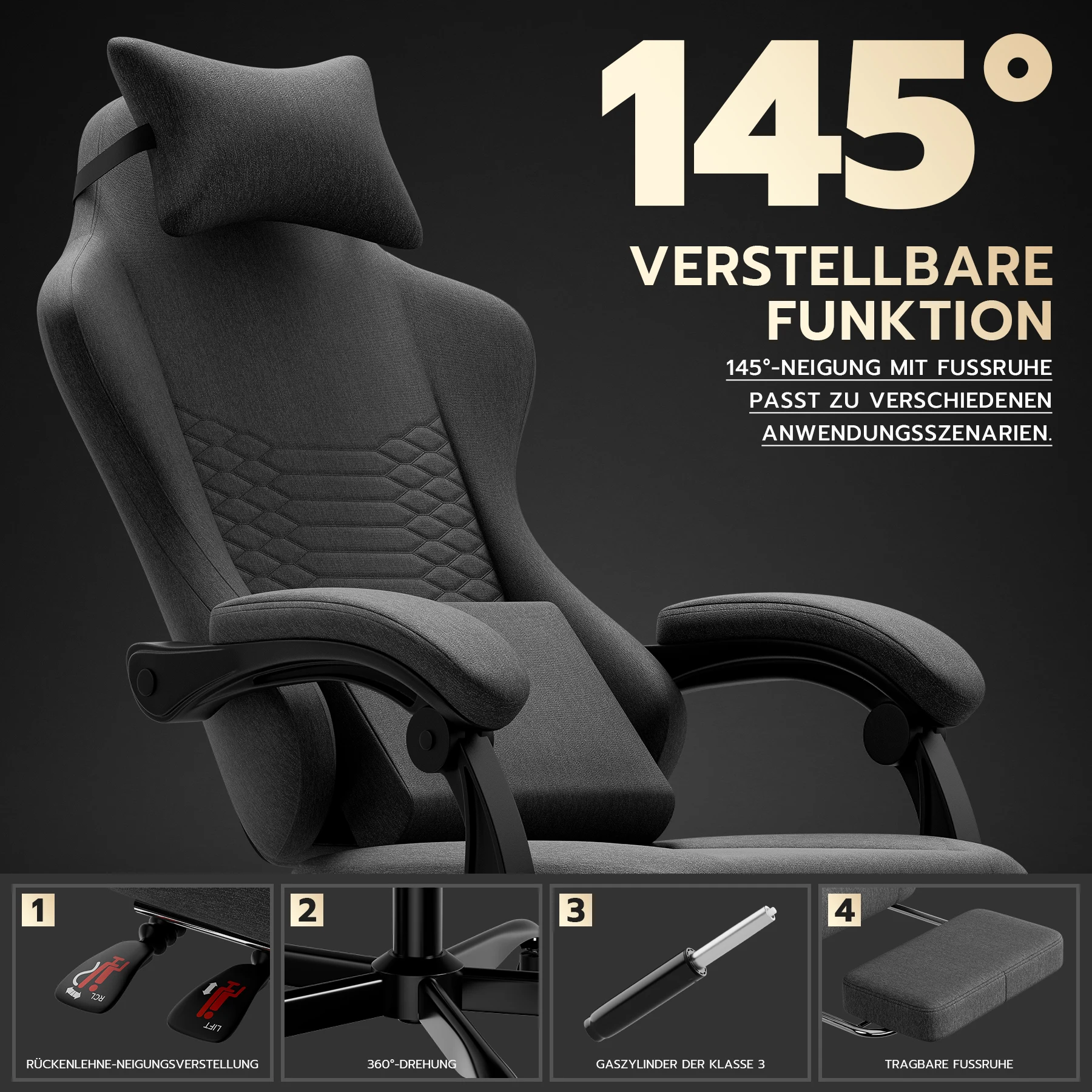 Silla de Oficina de Tela para Juegos, Silla de Juego con Masaje y Reposacabezas, Asiento Ergonómico de Juego con Reposapiés (Gris Oscuro)