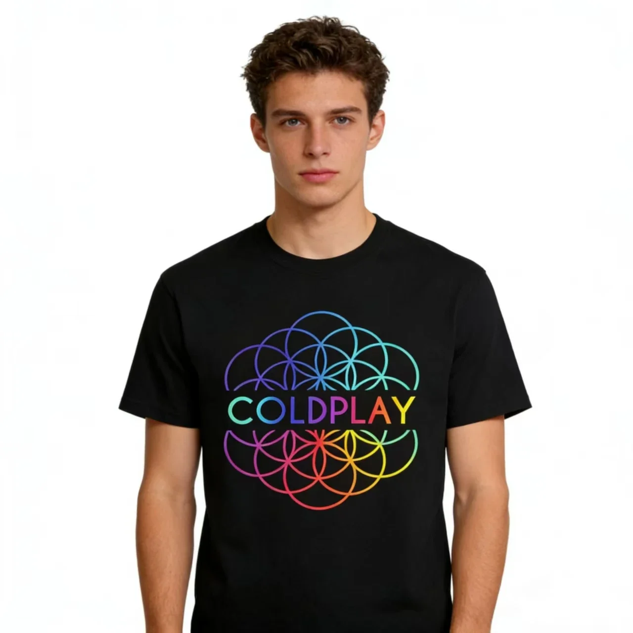 2025 Cold play Band Around The T-shirt verano hombres y mujeres del mismo 2025, ropa de algodón puro de manga corta para concierto Ins Y2k