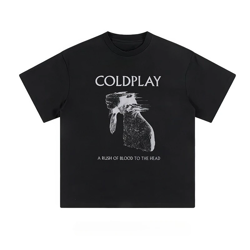 Camiseta de Manga Corta con Cuello Redondo, Estampada, de Algodón Puro, Estilo Retro Británico de la Banda de Rock Coldplay, para Hombre y Mujer