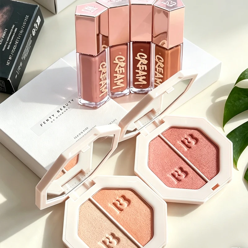 Set de Maquillaje Fenty Beauty: Contorno en Barra, Hidratante Labial, Brillo Labial, Iluminador Corporal, Colorete, Polvo Fijador Compacto, Maquillaje Completo