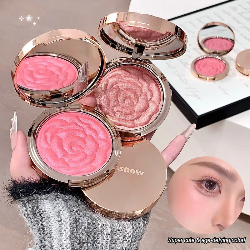 Polvo de Rubor con Relieve de Rosas, Acabado Brillante, Múltiples Tonos Rosas Disponibles, Diseño con Textura Floral, Ideal para Maquillaje Diario