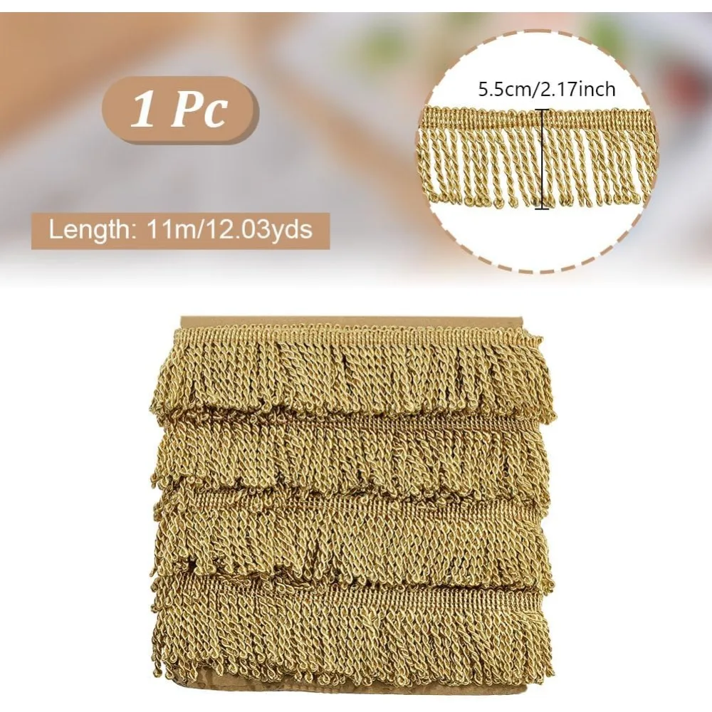 Adorno de flecos de 12 yardas x 2,2 pulgadas, cadena de costura, adorno de encaje, borla de flecos, adorno de flecos decorativos para caja de cortina, manualidades, decoración del hogar
