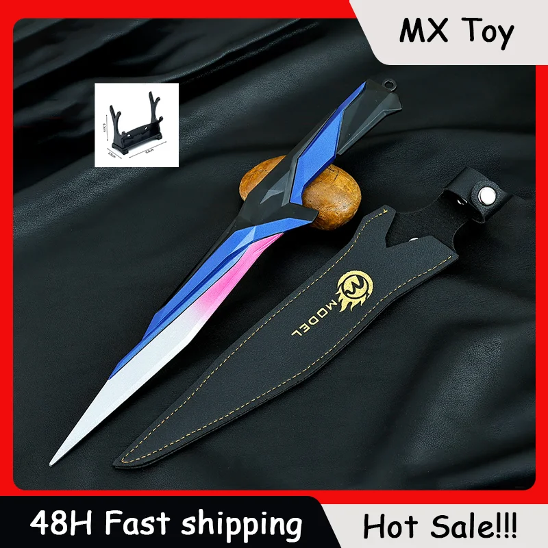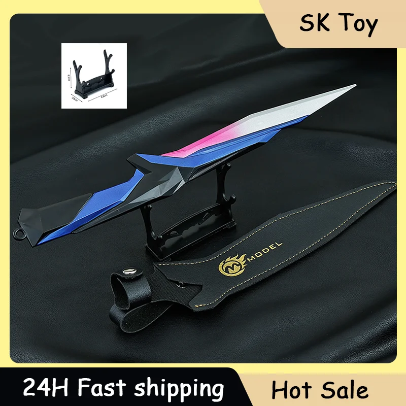 Cuchillo Valorant Singularity de 28 cm, Versión con Funda de Cuero, Color Degradado, Karambit de Juego, Espada de Juguete, Modelo Metálico, Adorno, Regalo, Colección