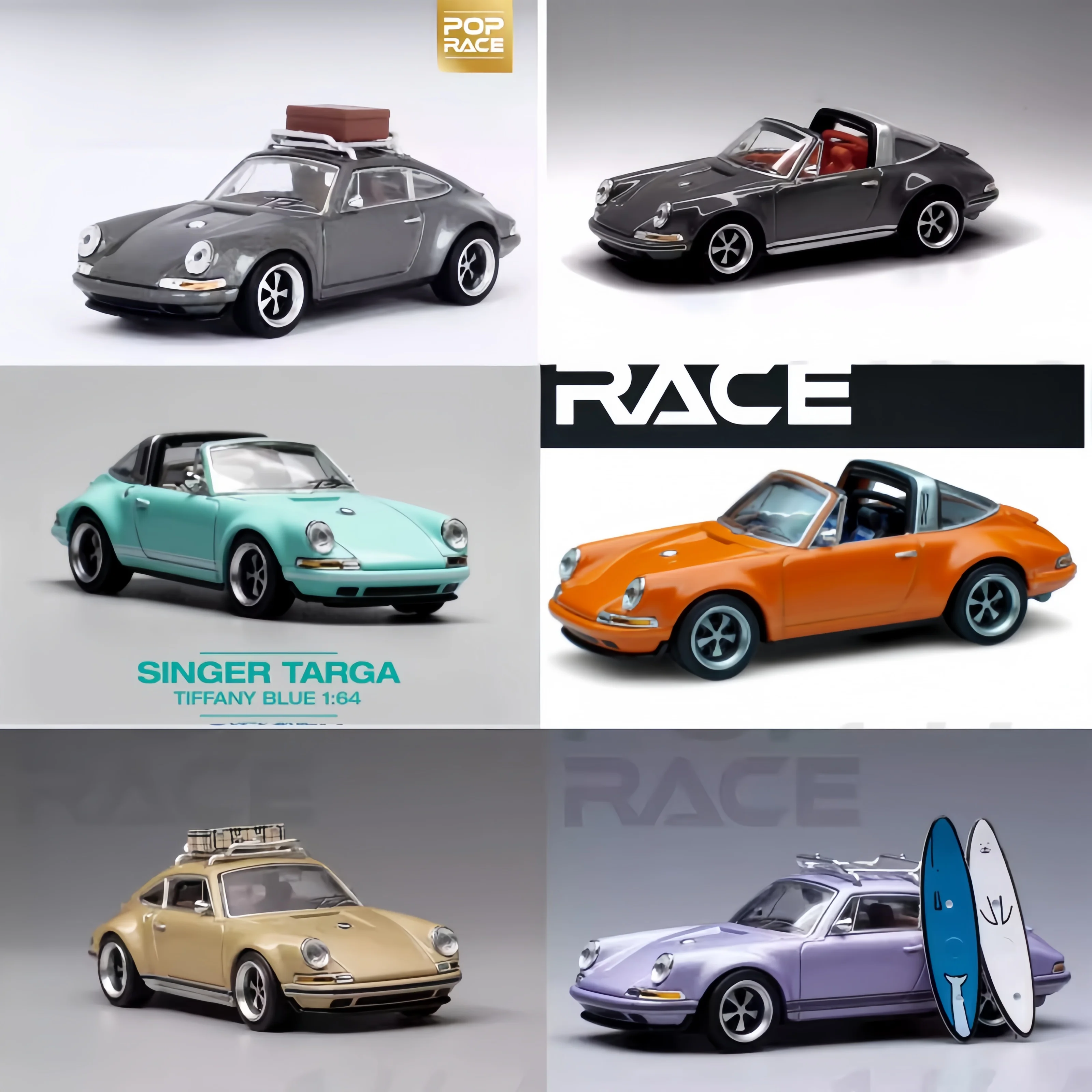 En stock 1:64 Singer Targa 911 964 coche de simulación en miniatura fundido a presión de aleación, figura para adultos, juguete para niños, regalo para niños