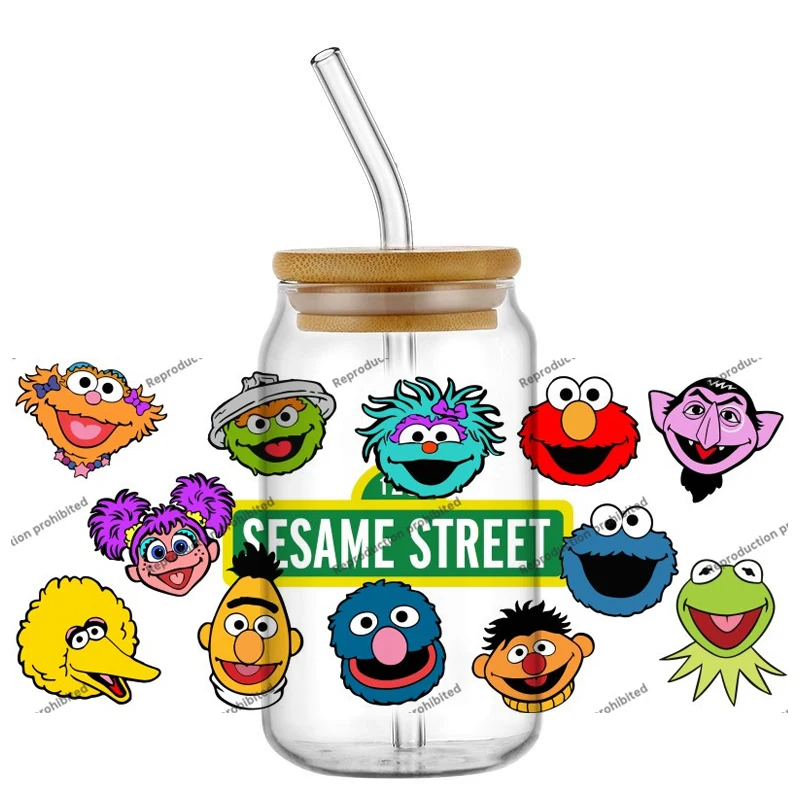 Nuevo diseño de 15 calcomanías 3D UV DTF de 16 oz con personajes de dibujos animados populares de TV como Elmo y Bert, para vasos, latas, manualidades y regalos DIY.