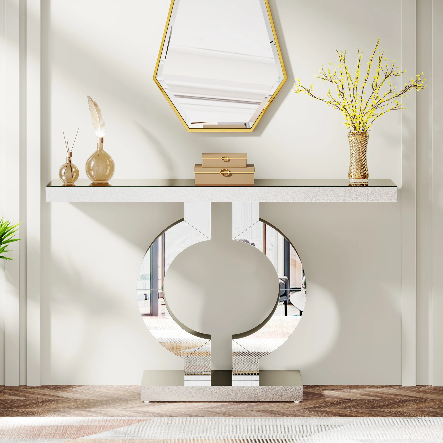 Mesa de consola de hotel con espejo brillante, mesa de pasillo con inserción de diamante de cristal para sala de estar