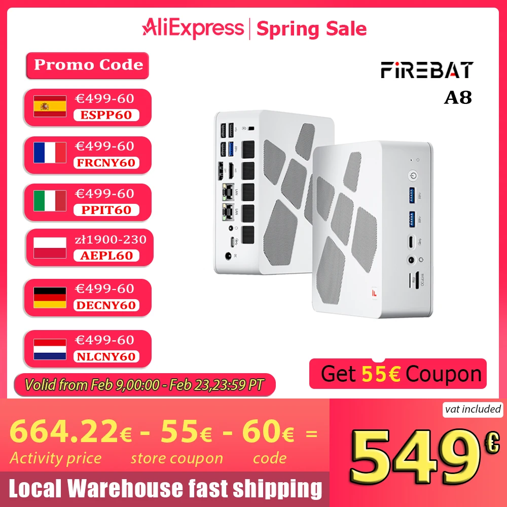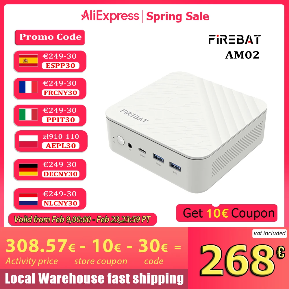 FIREBAT MINI PC AM02 AMD Ryzen 5 7430U Windows 11 PC 16GB DDR4 3200MHz 512GB SSD Wifi 6 BT5.2 HDMI 2,1 2,5 Gbps computadora de escritorio
