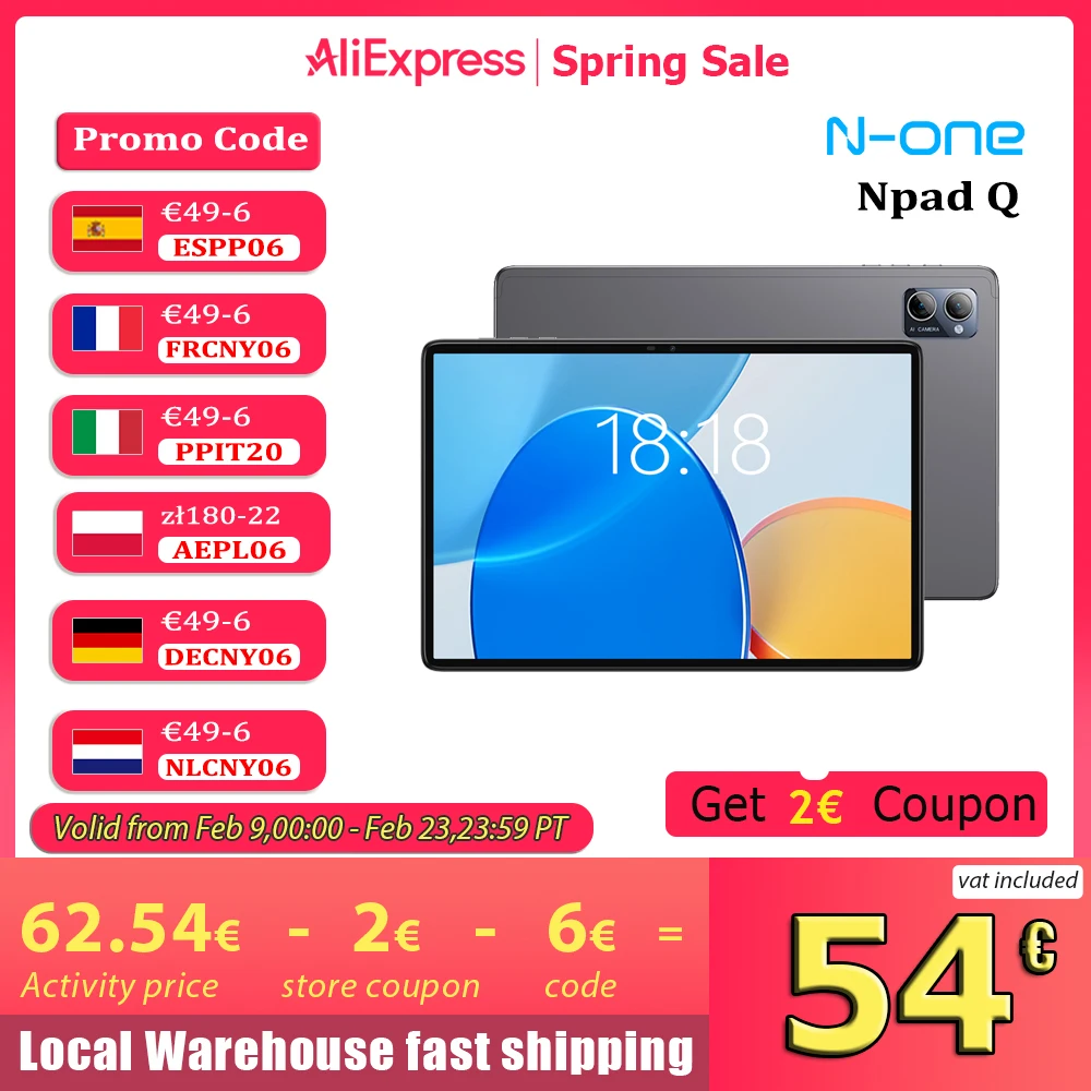 N-ONE NPad X1 Tablet PC MTK G99 8GB RAM 128GB ROM 2K 10,95 ''2000*1200 FHD IPS Android 13 4G LTE carga rápida WIFI BT5.1