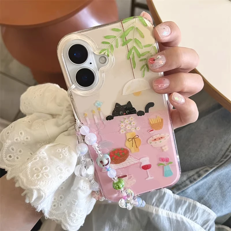 Funda de Teléfono con Diseño de Gato Negro de Dibujos Animados para iPhone 17 16 15 14 13 12 11 Pro Max, Estilo Y2K, Creativa, Negra