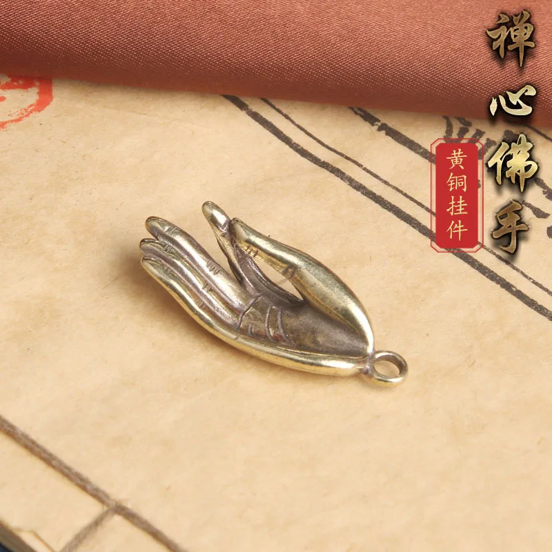 Llavero creativo de mano de Buda con corazón Zen de latón, colgante de bendición Zen, fuente de proveedor callejero, artículos de cobre pequeños al por mayor