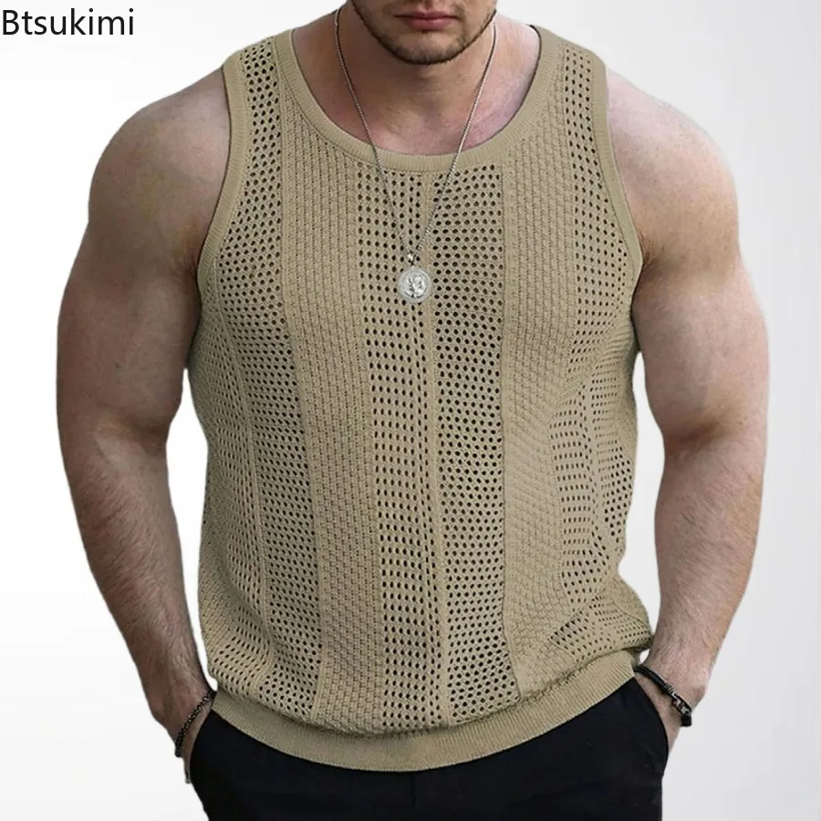 Camiseta sin mangas de verano para hombre, camisas sin mangas caladas de encaje, ropa de verano para hombre, ropa de gimnasio ajustada, camisetas de entrenamiento sólidas 2026