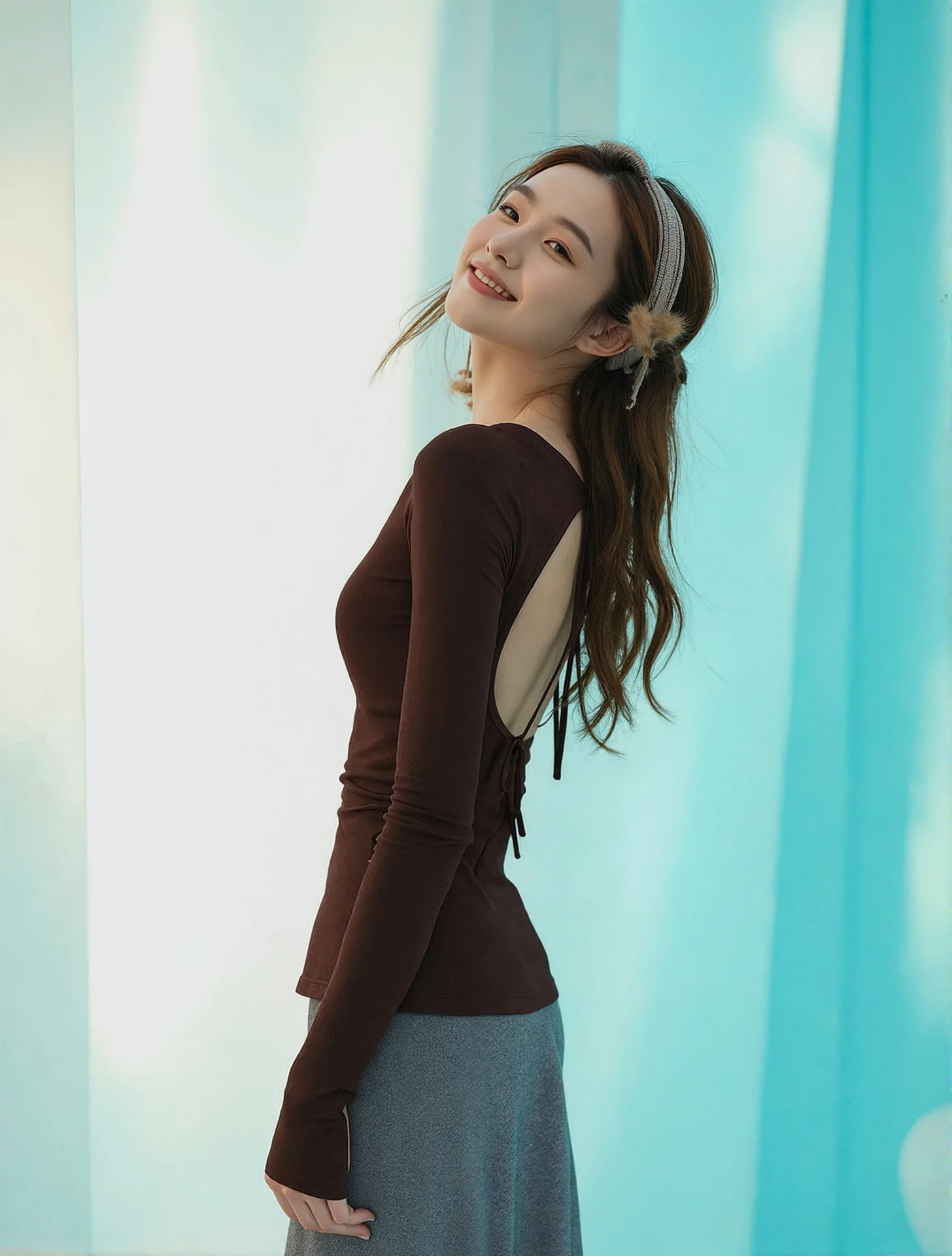 Camiseta con hombros descubiertos para mujer, para gimnasio, manga acampanada de invierno, estilo coreano Vintage, elegante, con detalle de encaje, ropa de calle Retro Ins