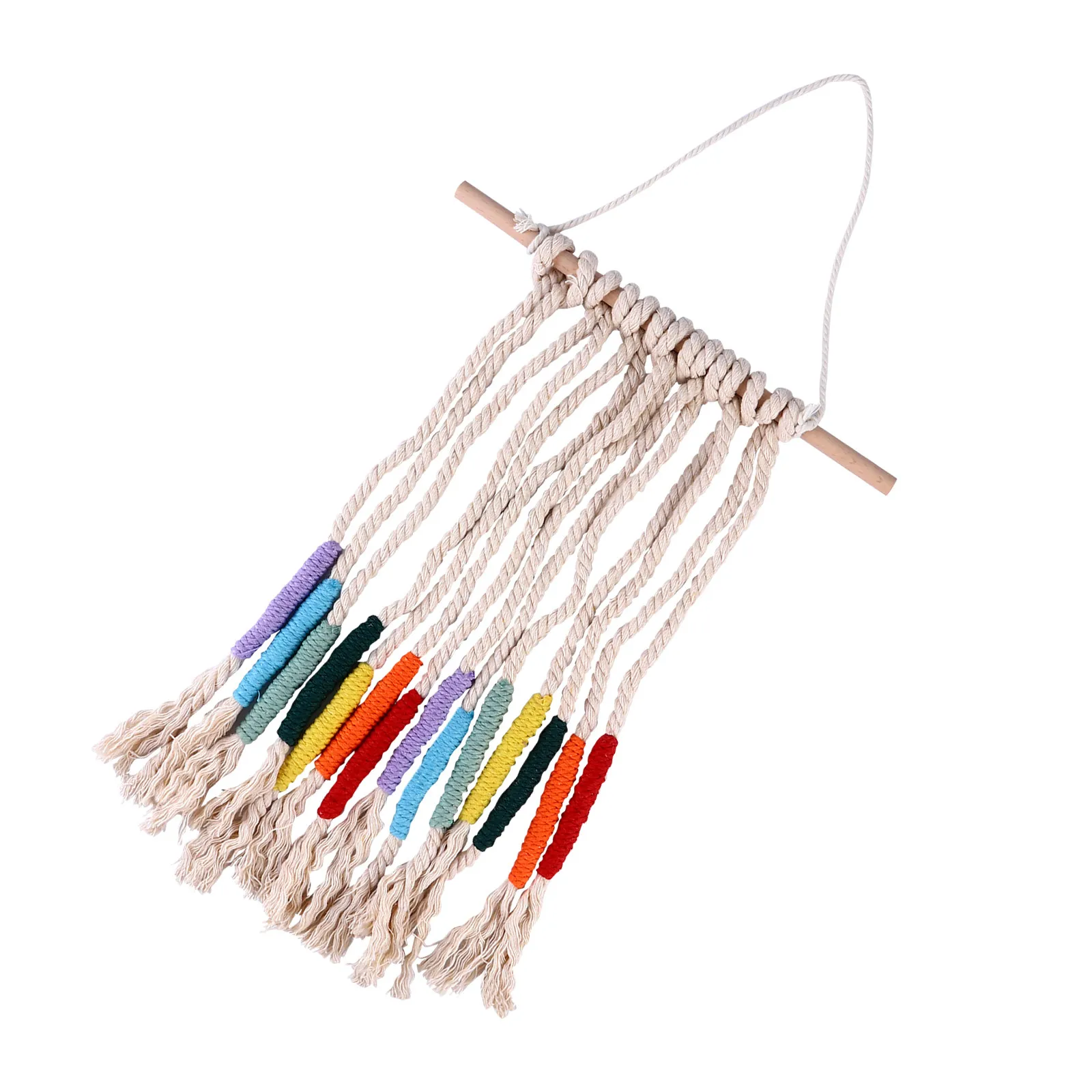 Tapiz de Pared Artesanal de Algodón y Lana con Diseño de Arcoíris para Decoración del Hogar, Ideal para Colgar en el Dormitorio o Sala de Estar