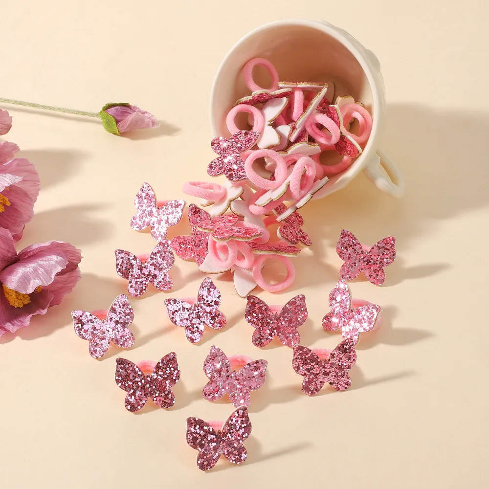 Juego de 20 Lazos para el Cabello con Lentejuelas de Mariposa para Niñas, Mini Bandas para el Cabello Brillantes, Seguras para Bebés, Coleteros de Goma