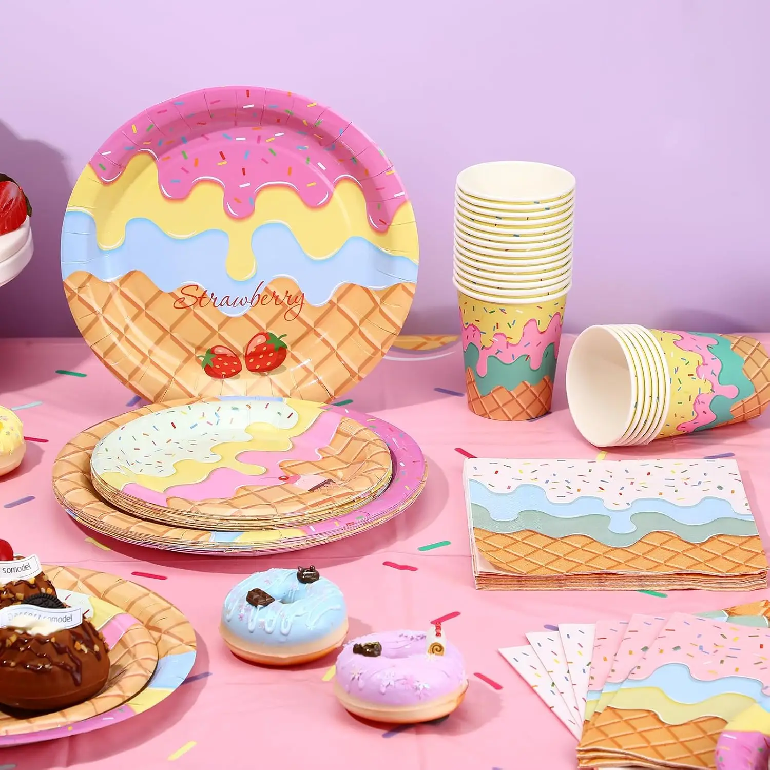 Decoración de fiesta de helado, mantel de helado, plato de servilleta, globo de pie de helado, suministros para fiesta de cumpleaños de nieve helada de verano dulce