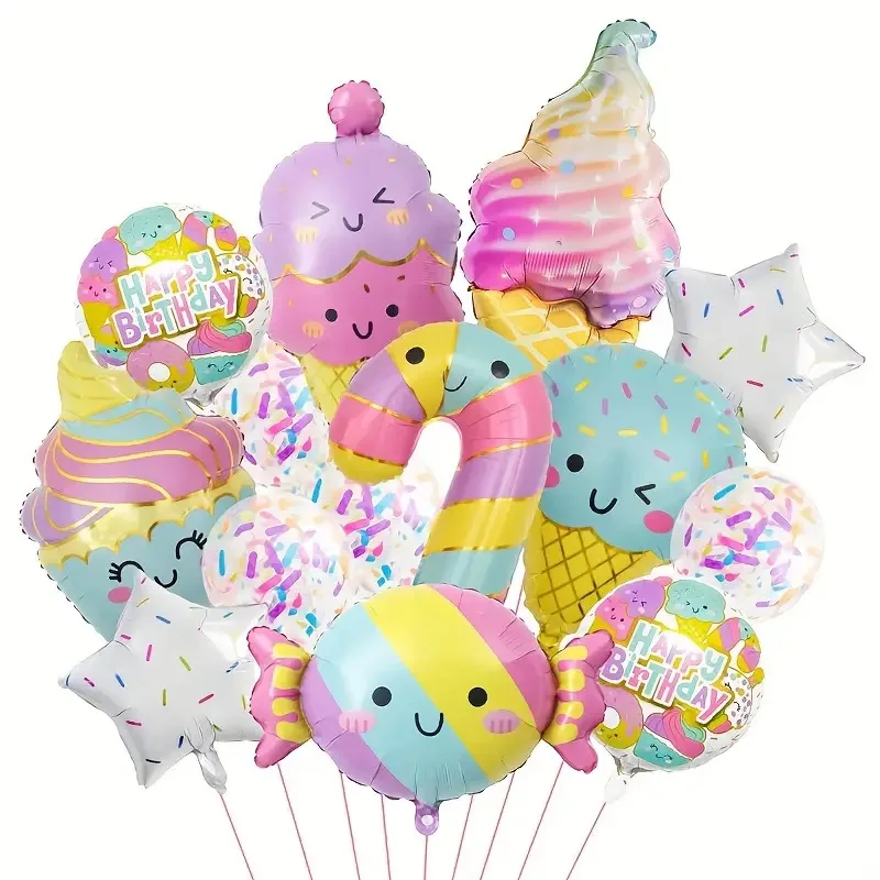 Juego de globos para fiesta temática de helado de caramelo, celebración de aniversario para niños, globo de película de aluminio, accesorio para fotografía de verano