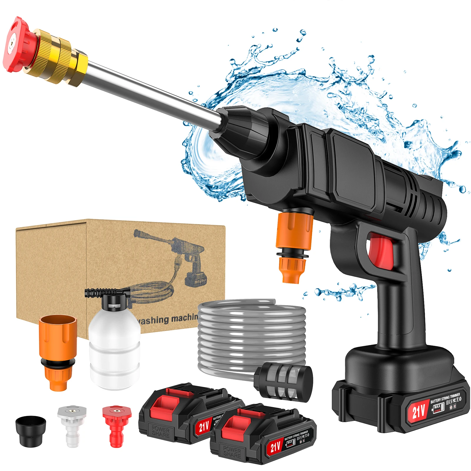 Limpiador inalámbrico de alta presión, lavadora, pistola de agua pulverizada, máquina de limpieza de agua a presión para lavado de coches, juego de dos baterías