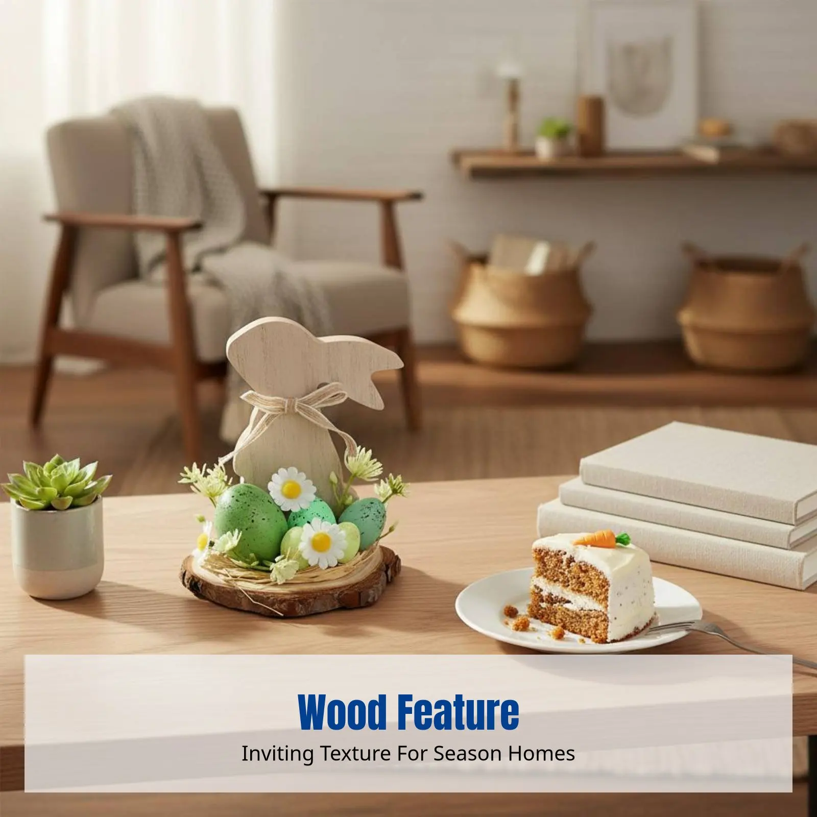 Decoración de Madera Ovalada con Forma de Conejo de Pascua, Decoración Creativa Hecha a Mano para Escritorio, Regalo Festivo para el Hogar