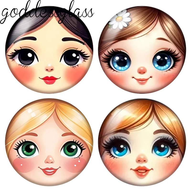 Nueva cara de muñeca para niña, cara de Matryoshka de dibujos animados, 12mm/18mm/20mm/25mm, foto redonda, cabujón de cristal, parte posterior plana, hallazgos