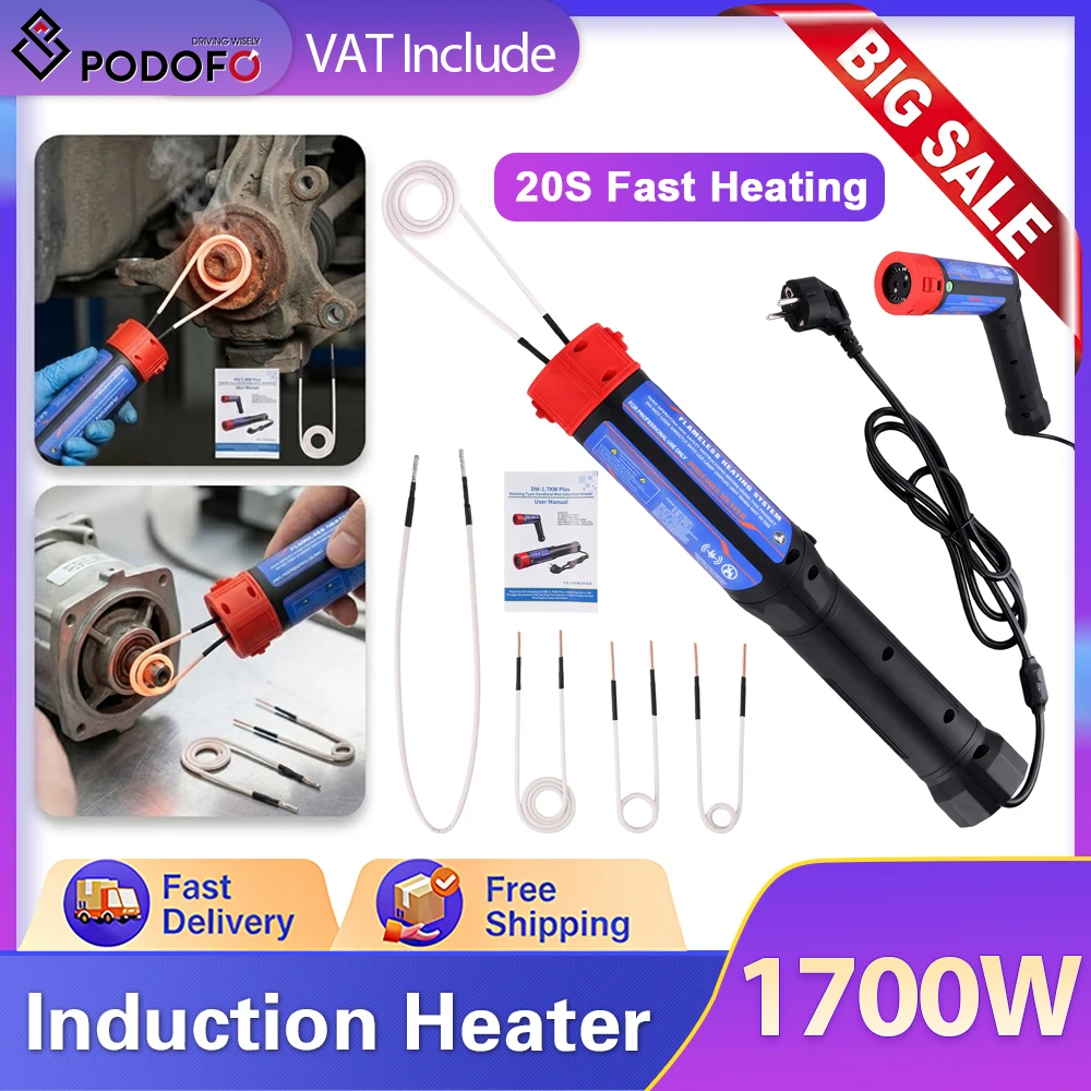 Calentador de Inducción Magnética Podofo de 1700W, Mini Calentador sin Llama, Enchufe Europeo, Herramienta de Reparación para Remover Pernos de Automóviles, Calentamiento Rápido en 20 Segundos con 4 Bobinas