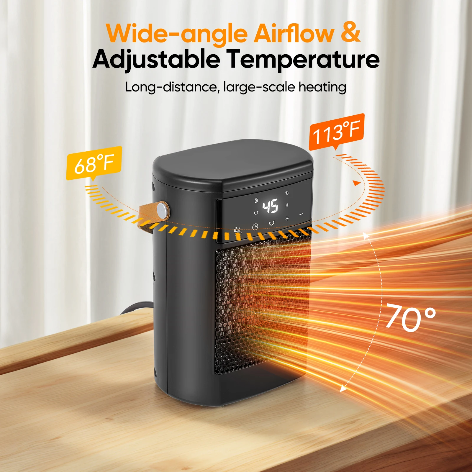 Calentador eléctrico de cerámica PTC portátil remoto inteligente, calentamiento rápido, pantalla táctil de bajo ruido, ventilador frío y caliente para el hogar, dormitorio y oficina