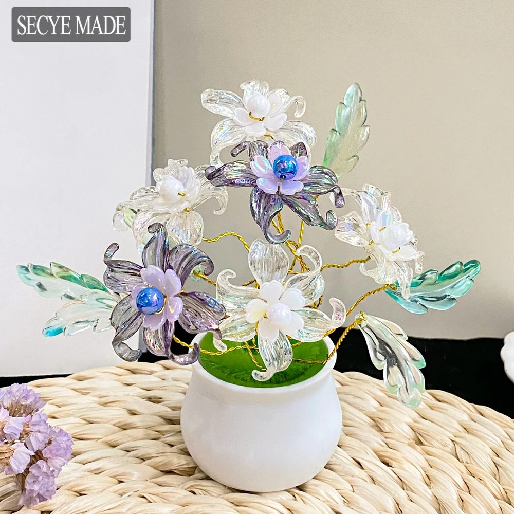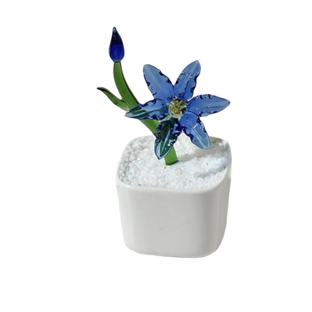 Mini Flor de Lirio de Vidrio Soplado con Maceta, Ramo de Flores de Vidrio Soplado, Decoración de Flores de Vidrio, Decoración para Bodas