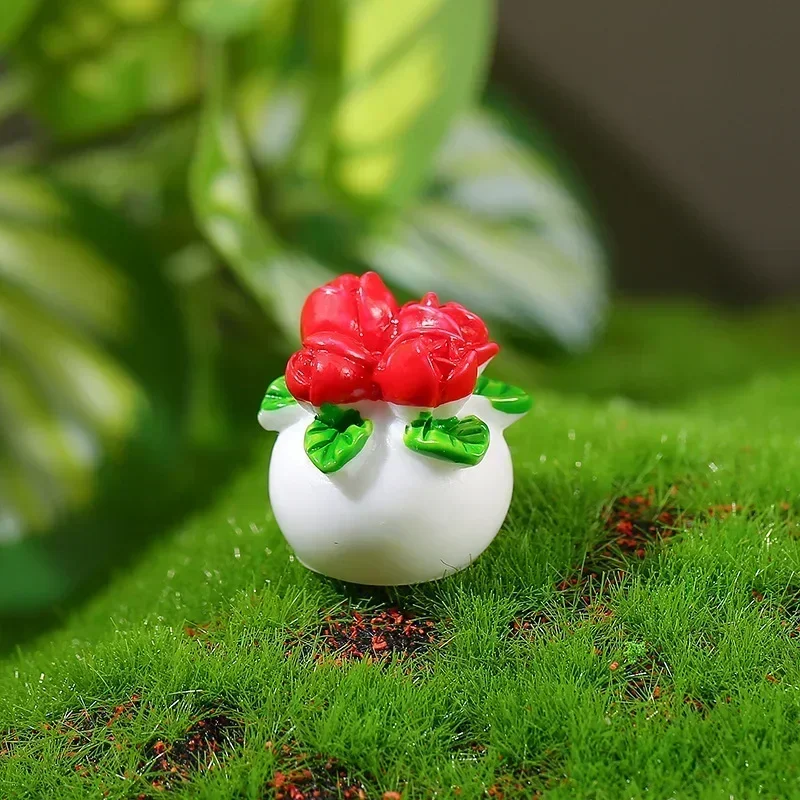 5 Piezas de Mini Macetas de Resina con Flores Artificiales para Micro Paisajes, Terrarios de Musgo, Decoración de Escritorio, Hogar y Habitaciones