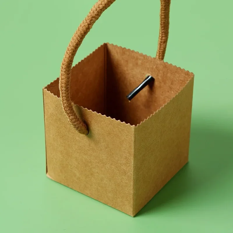 Caja de Papel Kraft Simple con Asa de Cuerda, 20 Piezas, Caja de Papel Portátil para Suculentas, Mini Planta Verde en Maceta, Arreglo Floral