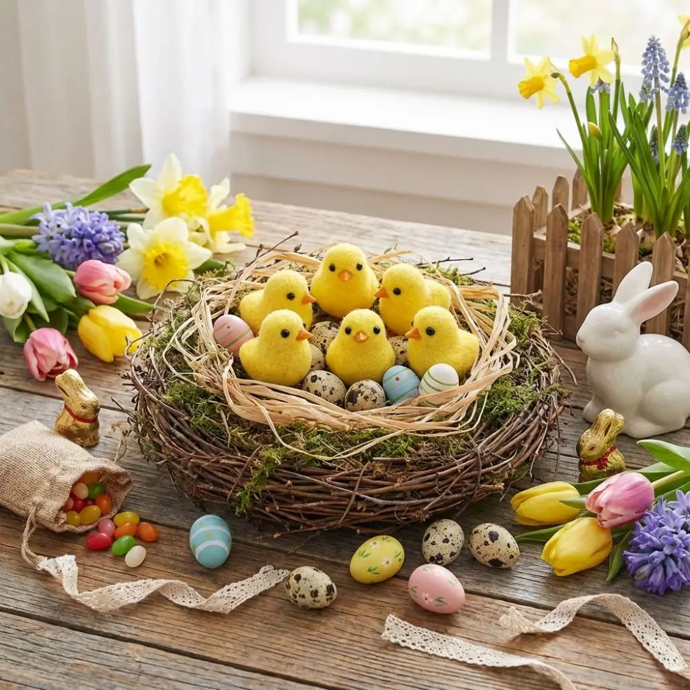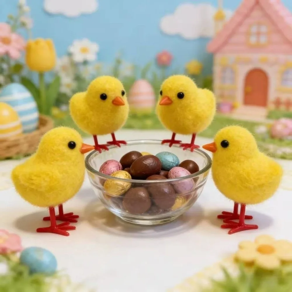 Adorno de Pollo Realista y Adorable, Figura de Pollito de Pascua de Pie, Pollitos de Imitación con Flocado, Maceta