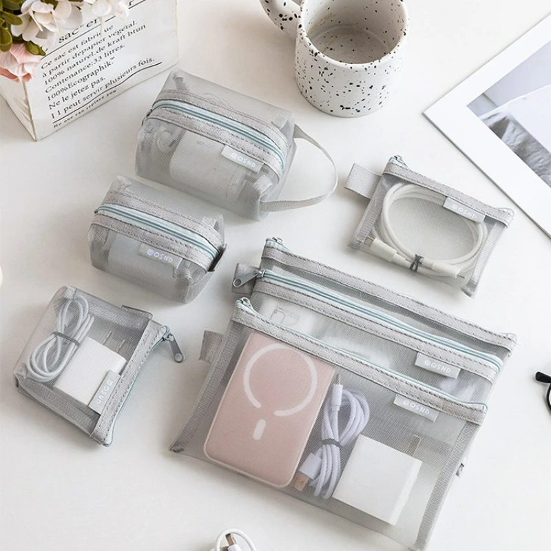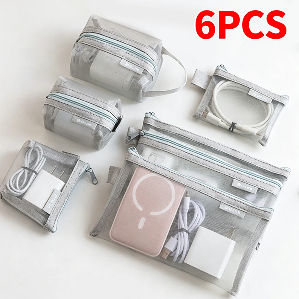 Juego de 6 Bolsas Transparentes de Malla para Monedas y Artículos Diversos, Organizador de Tarjetas Portátil de Viaje, Bolsa de Almacenamiento para Lápiz Labial, Bolsa de Cosméticos