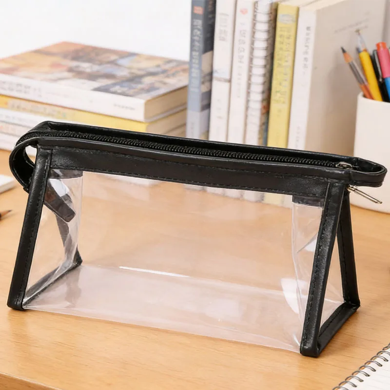 Bolsa de cosméticos transparente de PVC, bolsas de lápices impermeables Kawaii para estudiantes, papelería, suministros escolares, estuches portátiles para lápices