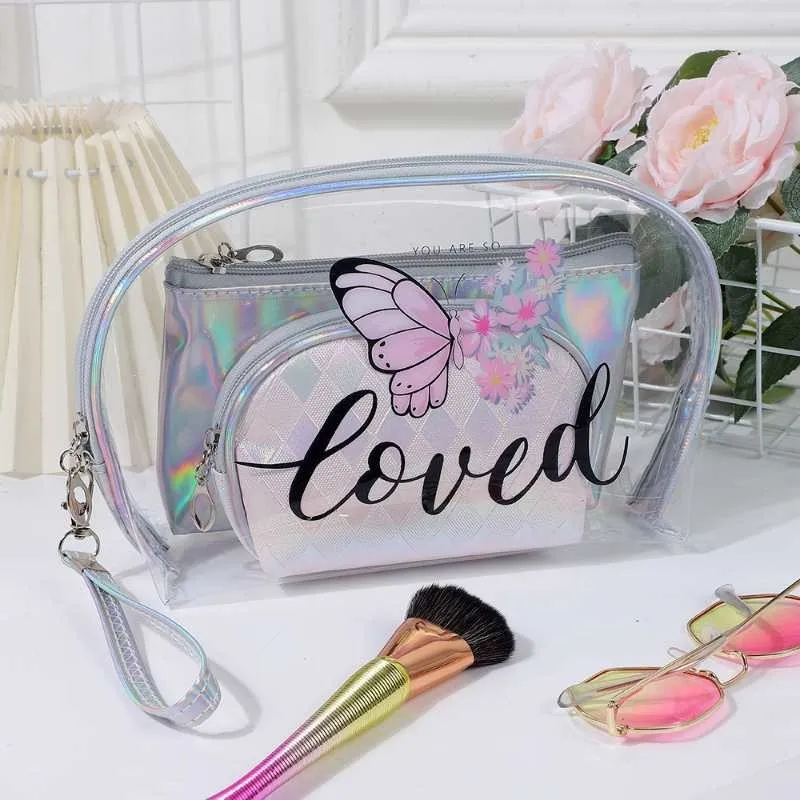 Bolsa de cosméticos transparente de PVC de viaje para mujer, bolsas de maquillaje transparentes con cremallera, estuche de belleza, organizador de maquillaje, bolsa de almacenamiento de aseo para baño