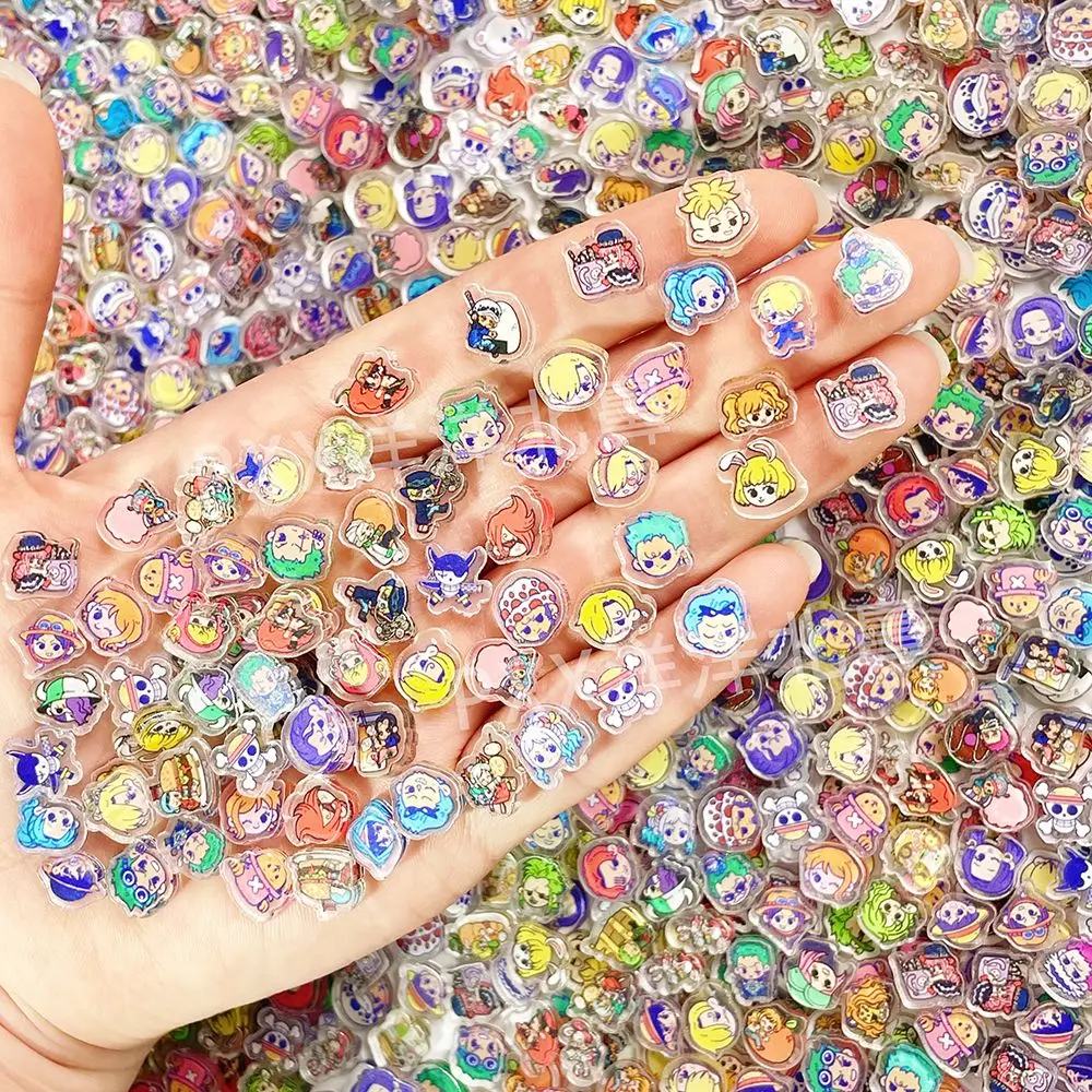 100 mini dijes acrílicos de One Piece para bricolaje, utilizados para decorar lindos imanes de nevera, materiales para carcasas de teléfono, regalos de anime y dibujos animados, y juguetes.
