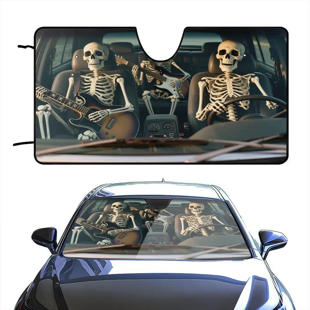 Parasol para coche con calavera suave y divertida, película de aluminio aislante térmica, bloques de ventosa reutilizables, Protector de visera para coche con rayos UV