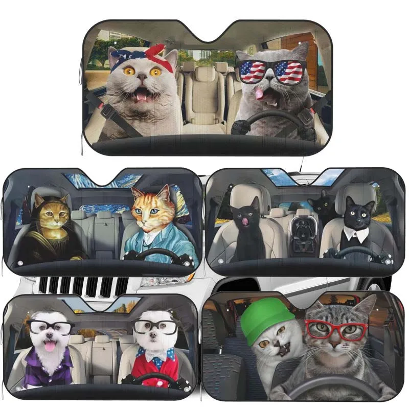 Divertido gato de conducción realista fresco parasol para coche parabrisas de coche parasol protección UV y enfriador Interior