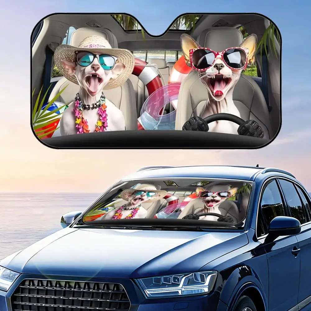Divertida Visera Solar con Diseño de Gato Sphynx, Reutilizable, de Lámina de Aluminio, para Coche, Protección UV, Aislamiento Térmico, Cubierta para Parabrisas