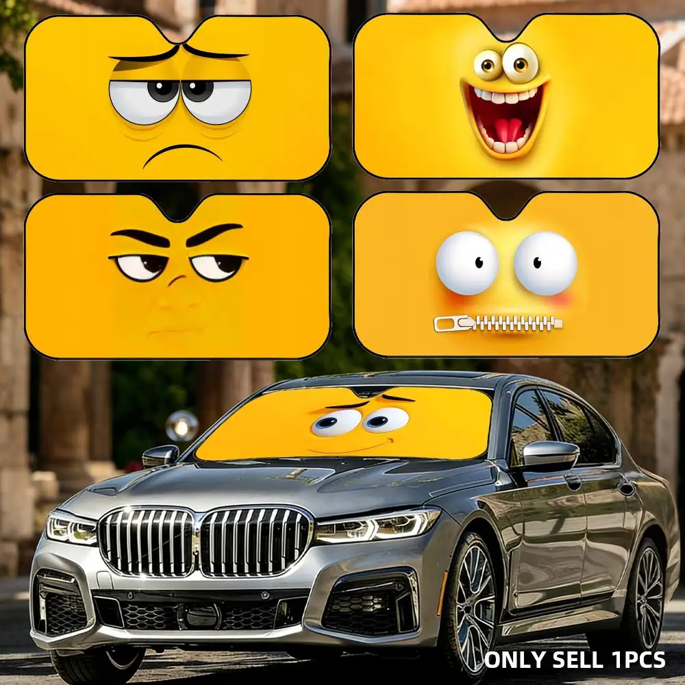 Parasol para parabrisas de coche con diseño de dibujos animados amarillos, protector solar para ventana delantera, bloqueador UV, aislamiento térmico