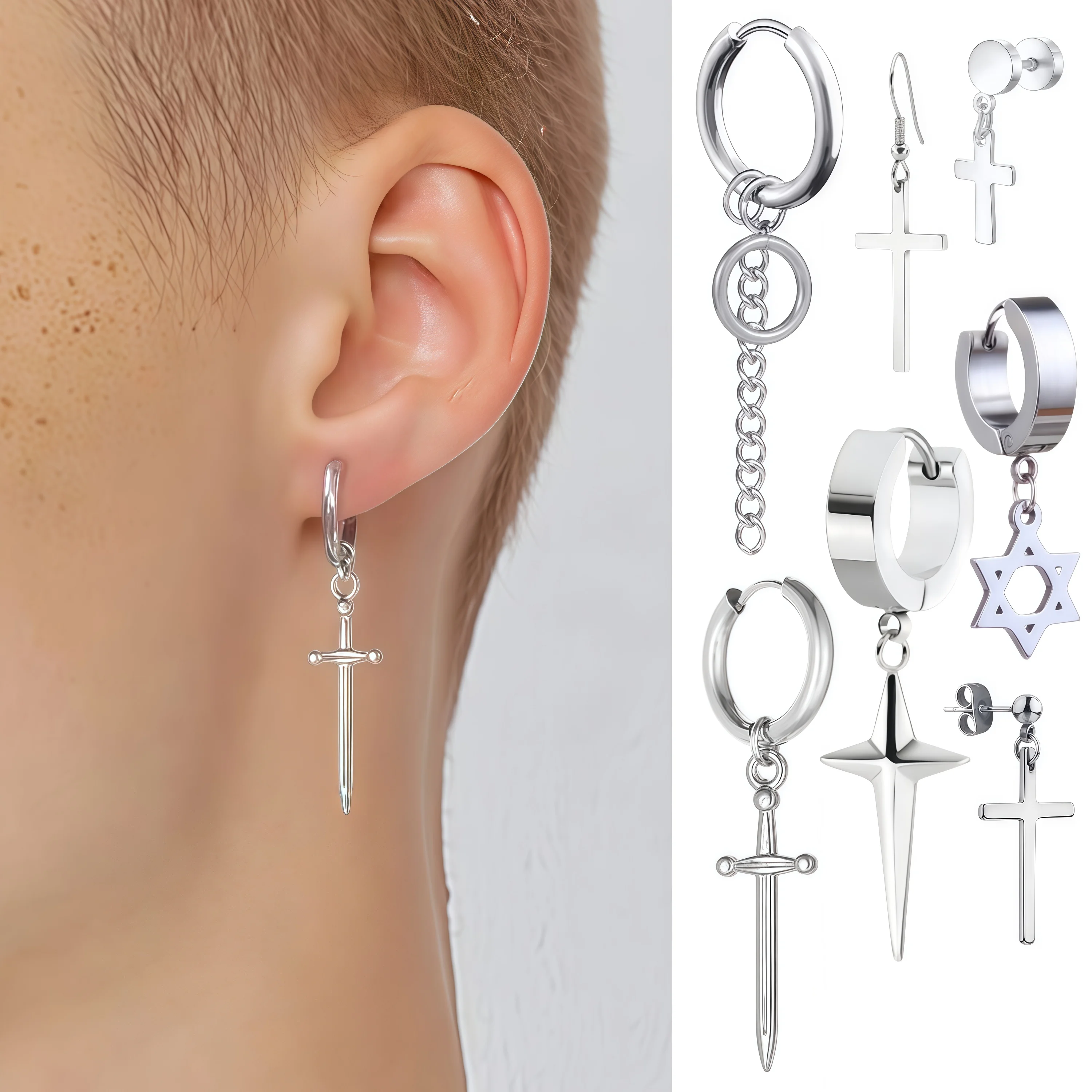 1 par de espada cruzada pluma relámpago Acero inoxidable redondo Piercing aro mujer pendiente para mujer joyería accesorios tendencia nuevo en