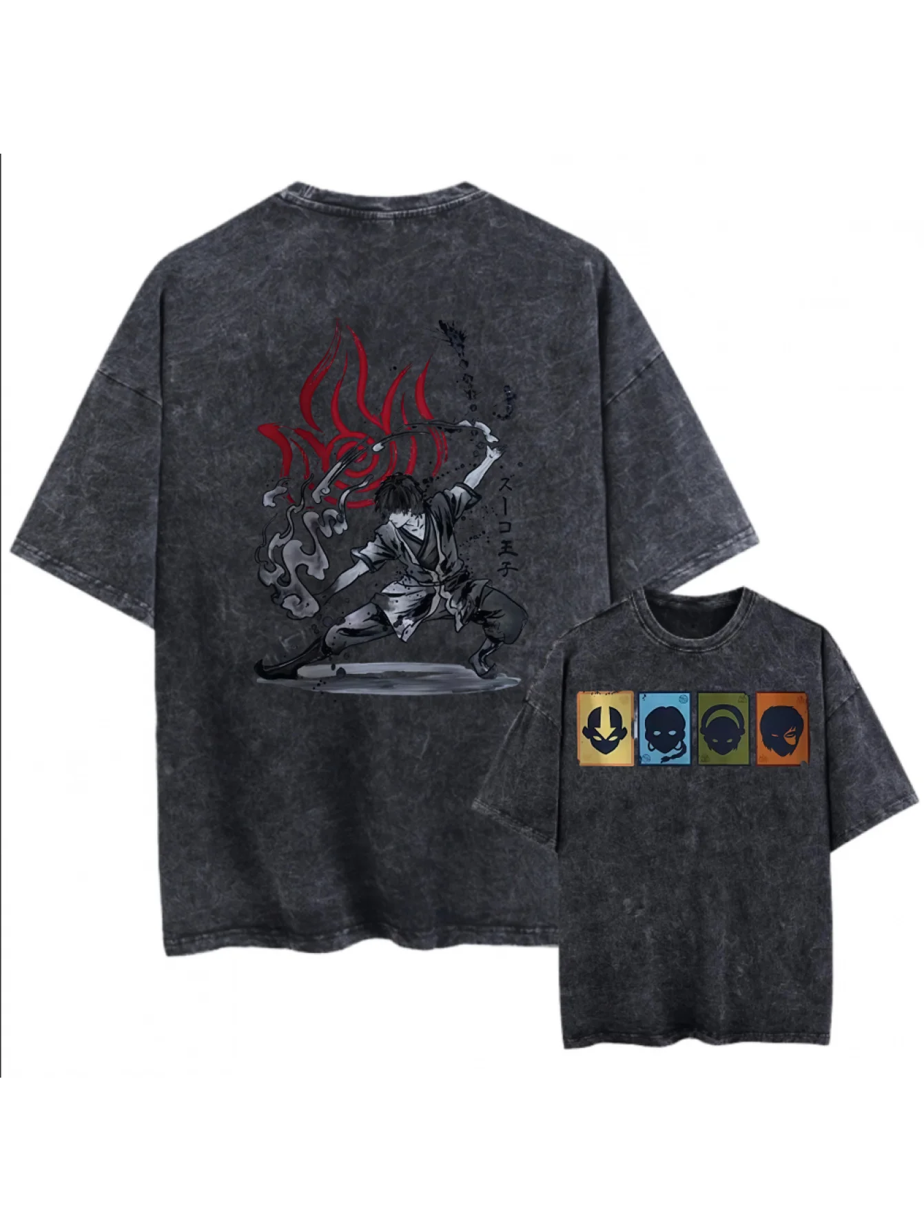 Camiseta lavada para amantes del anime Avatar The Last Airbender, ropa para todo el año, ropa con personalidad, talla grande, unisex, nuevo modelo para parejas