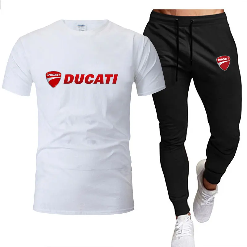 Camiseta de manga corta de verano con estampado de motocicleta Ducati para hombre + pantalones deportivos informales, conjunto para entusiastas de la motocicleta