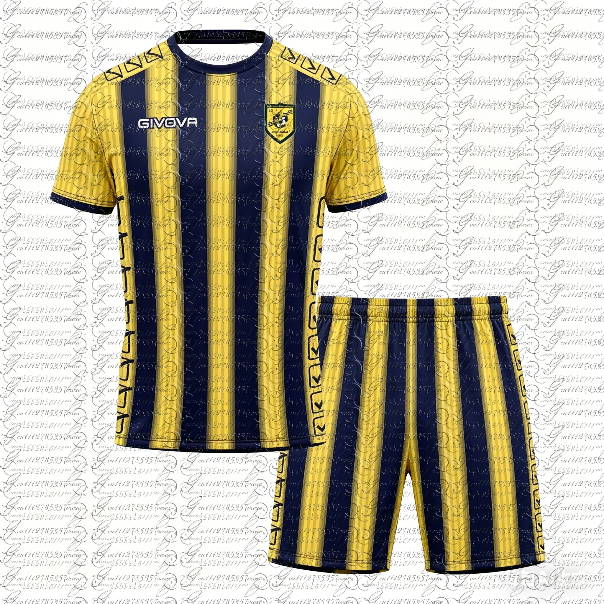 Conjunto de Camiseta Deportiva Transpirable con Estampado Geométrico de Rayas Azul Marino y Amarillas, Jersey de Fútbol con Estampados 3D HD, Ideal para Combinar en Familia
