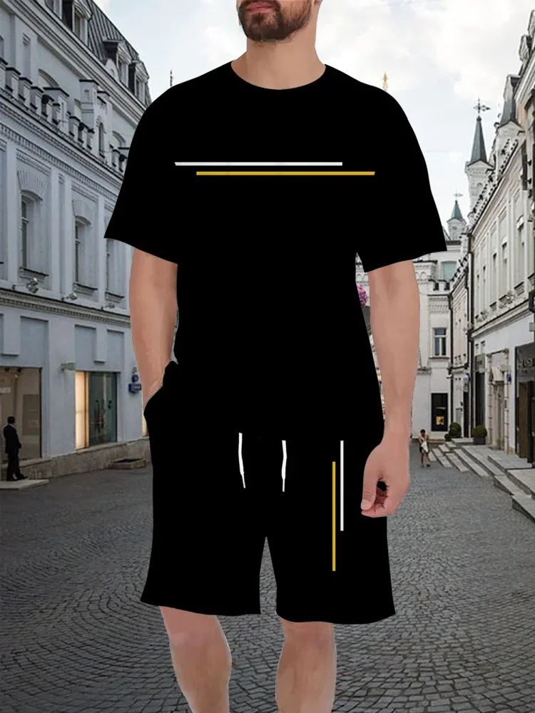Nuevo Conjunto Deportivo de Verano para Hombre, Camiseta de Manga Corta a Rayas, Dos Piezas, Ropa de Viaje para Exteriores, Pantalones Cortos de Corte Holgado, Ropa de Entrenamiento