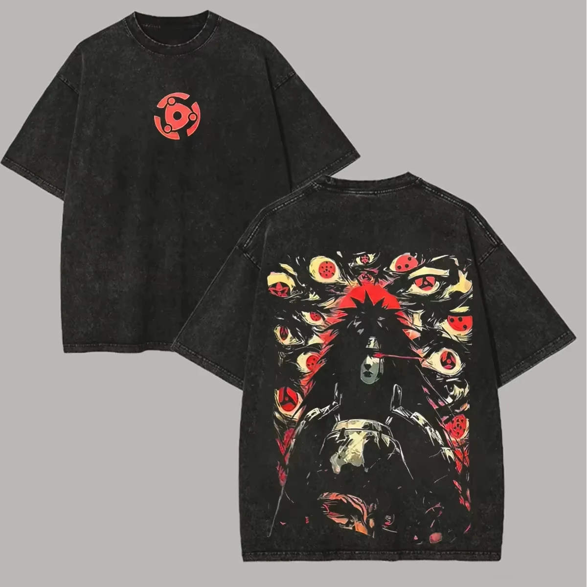 Camiseta Naruto Shisui Uchiha Mangekyo Sharingan Vintage con Lavado Ácido, Estilo Urbano, Oversize, Retro, con Gráficos de Anime para Hombre