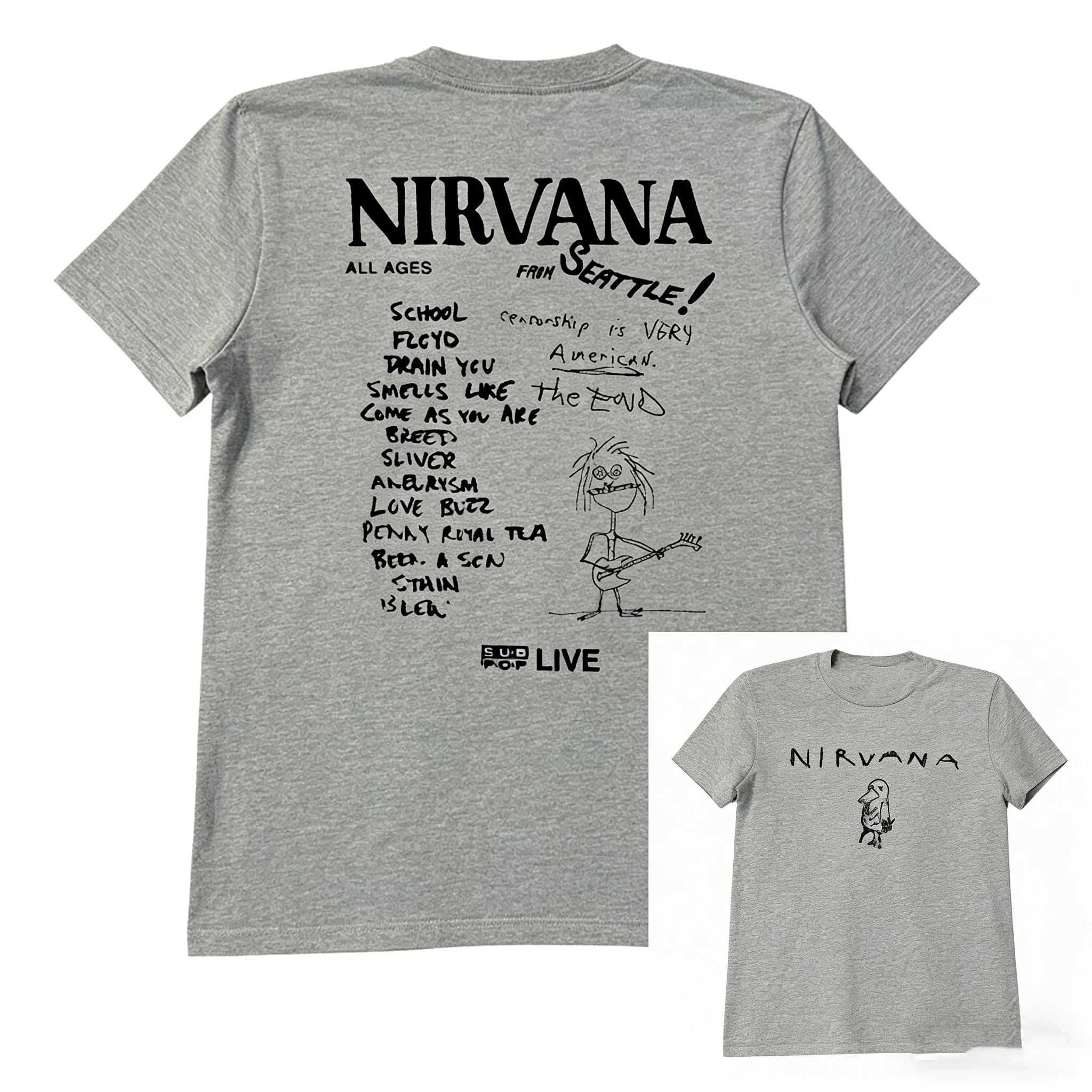 Camiseta de Manga Corta para Hombre y Mujer, Estilo Universitario Vintage, Diseño American Graffiti, Nirvana 2026