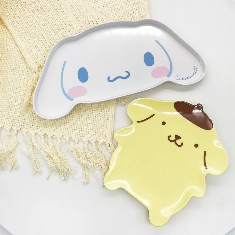 Platos de Cena de Sanrio Cinnamoroll y Pom Pom Purin, Platos con Forma de Dibujos Animados, Platos Irregulares para Pastel/Fruta, Vajilla para el Hogar, para Regalos