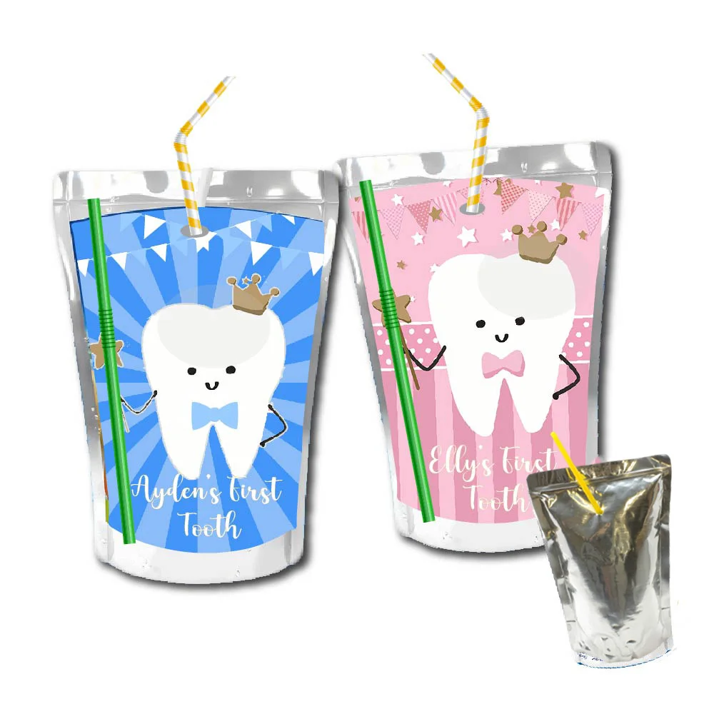 Etiquetas de bolsa de jugo de primer diente para niño y niña, etiqueta de Favor de burbujas de jabón, bolsa de Chip, caja de dulces, pegatinas de botella, decoración de fiesta de cumpleaños y Navidad