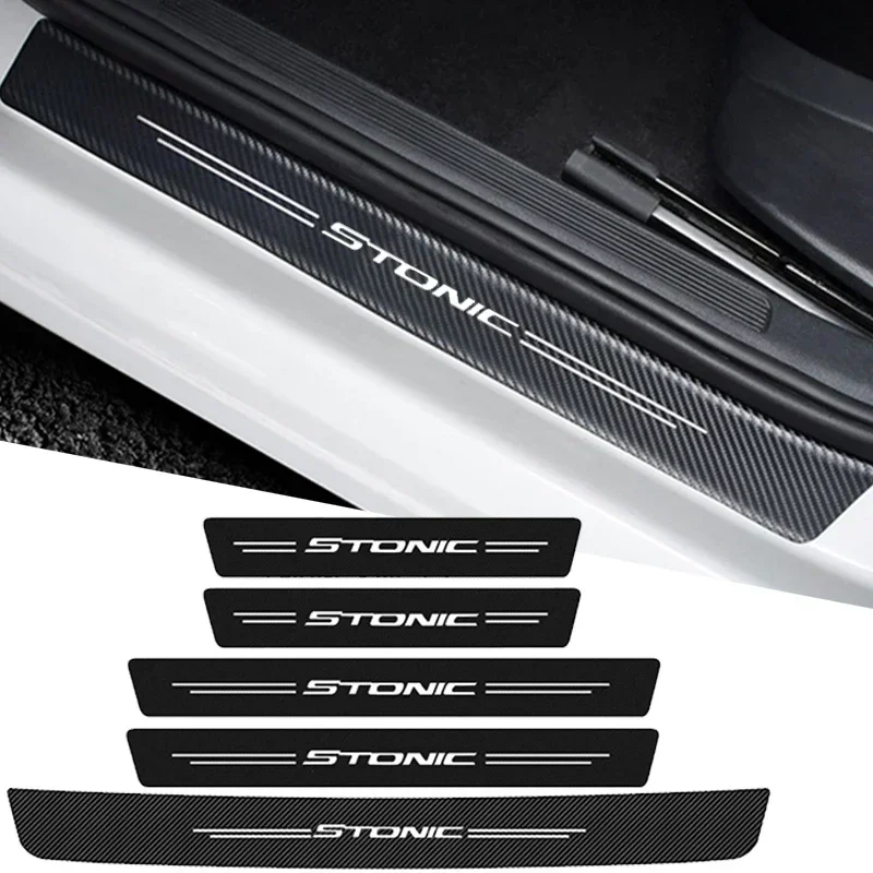 Pegatina protectora para alféizar de puerta de coche, tira de umbral de fibra de carbono para KIA Stonic, insignia, parachoques de puerta de maletero, cinta embellecedora antiarañazos